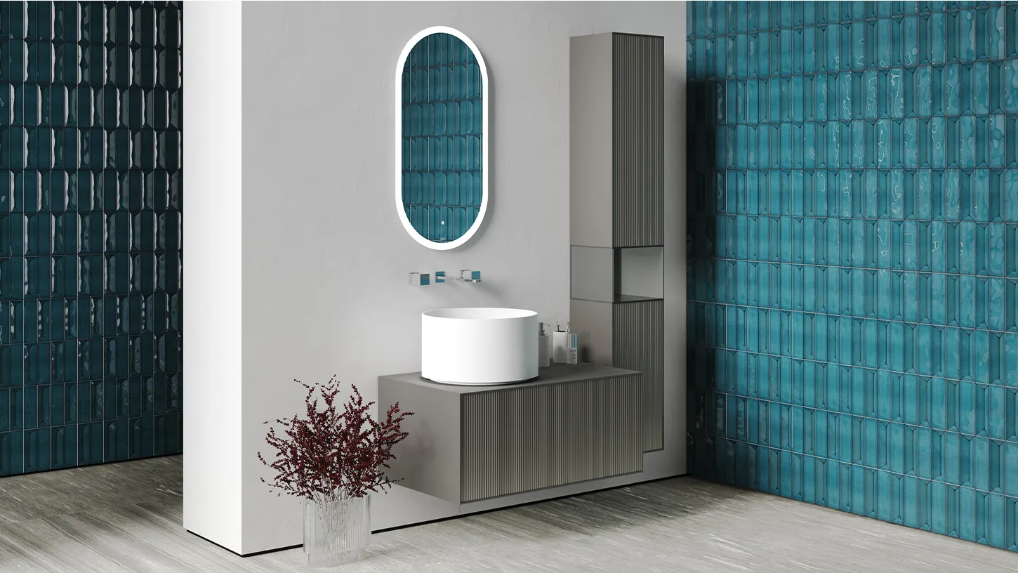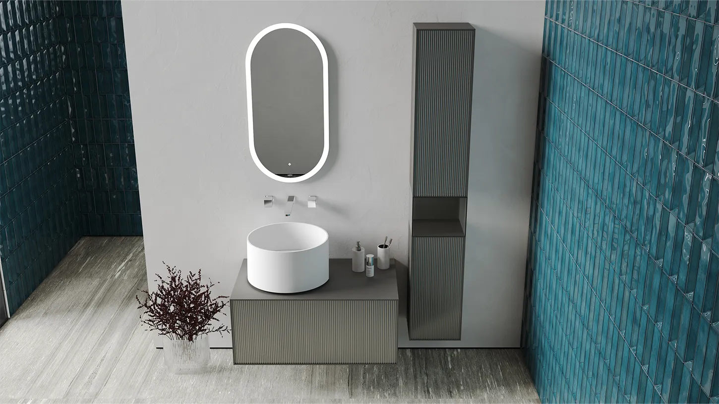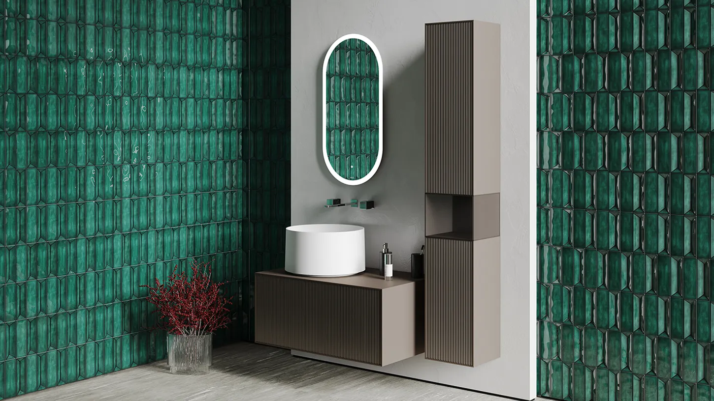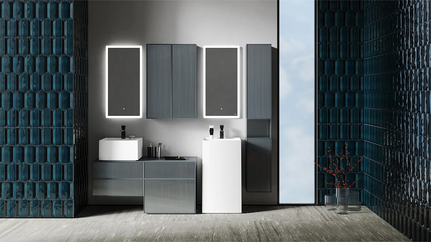 Продуманное комбинирование модулей позволяет создавать как компактные, так и протяжённые композиции мебельных сетов, включающие в себя различные типы раковин, в том числе разной высоты. Широкая вариативность коллекции открывает безграничные варианты для уникального дизайна как компактных, так и просторных ванных комнат.