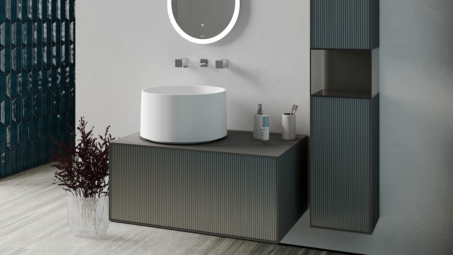 • столешницей COSTA из литьевого камня S-Stone с накладными, встраиваемыми и полувстраиваемыми раковинами Salini,