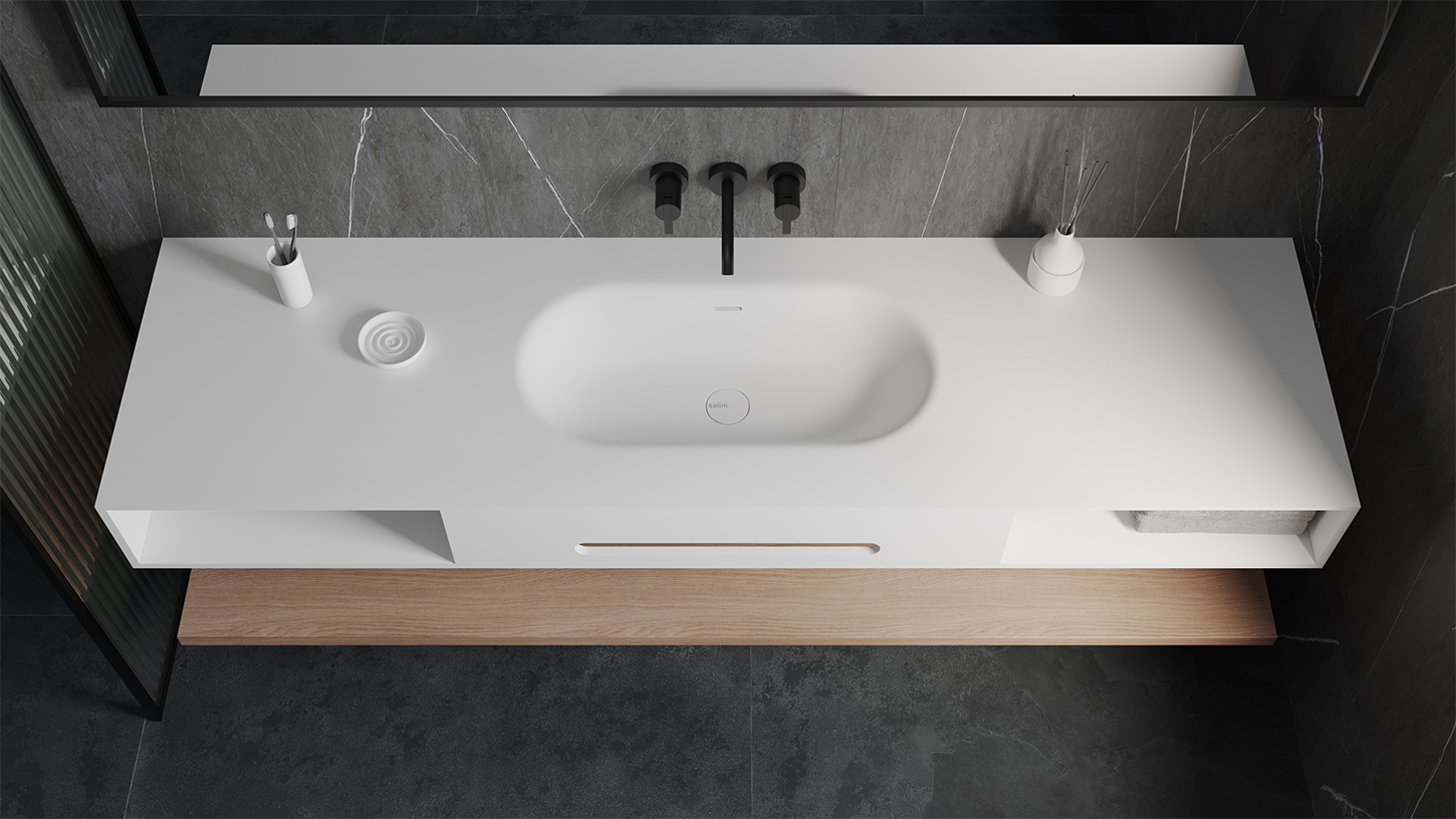 S-Stone — это современный композитный материал, в состав которого входят природные минералы на основе бокситов, связующие смолы и натуральные пигменты. Благодаря передовой технологии Solid Surface изделия S-Stone имеют полностью однородную структуру и не нуждаются в дополнительном покрытии.