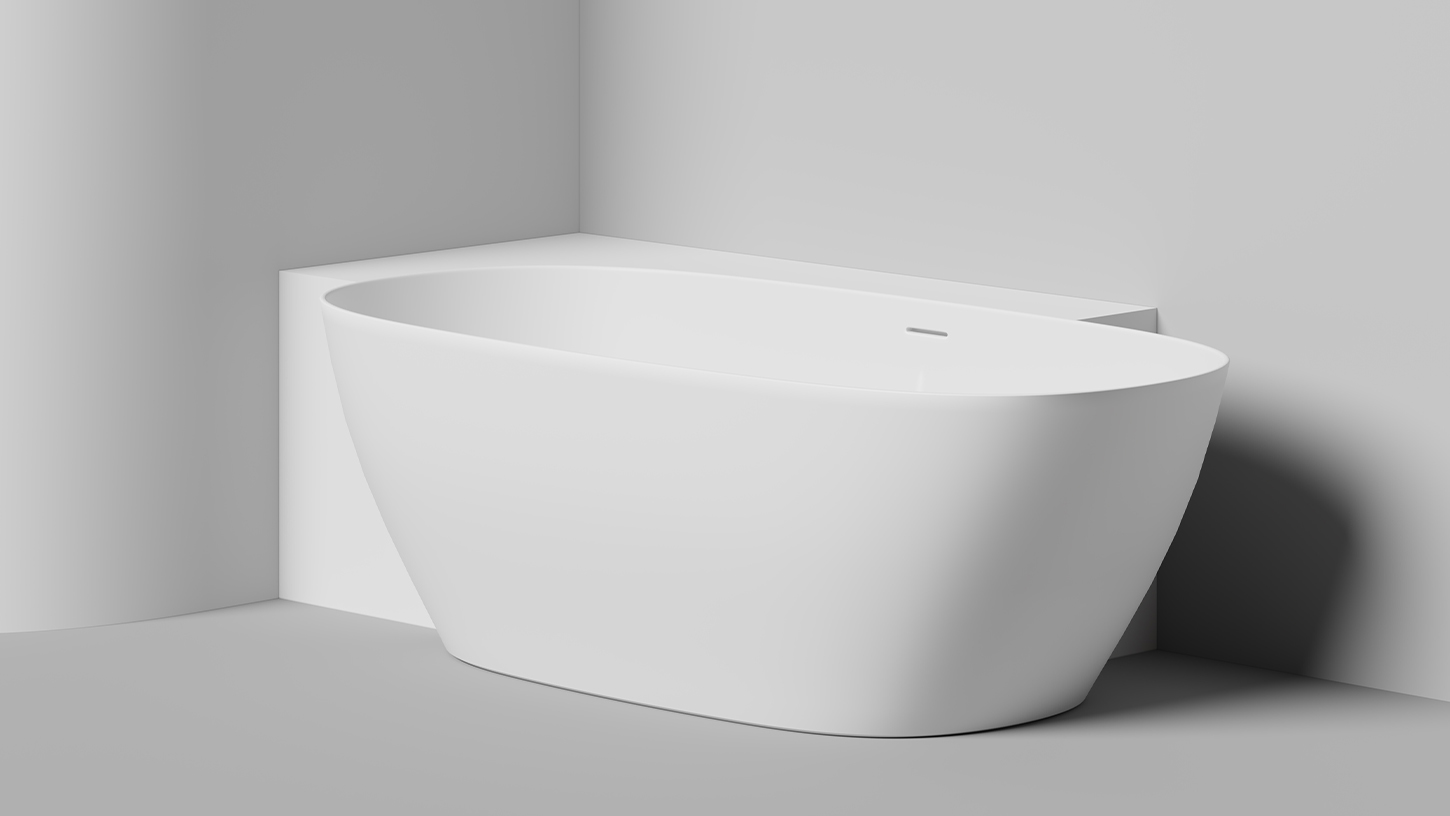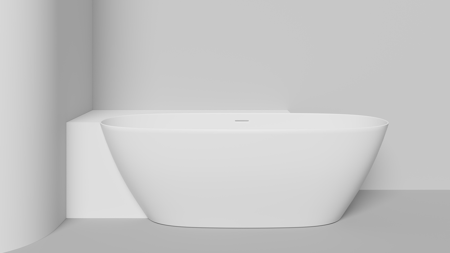 Угловая модификация для отдельностоящих ванн из материала S-Stone. Конструкция бесшовно интегрируется в изделие под прямым углом по отношению к внешним бортам ванны и создает дополнительное пространство для удобного размещения косметических принадлежностей и установки смесителя.