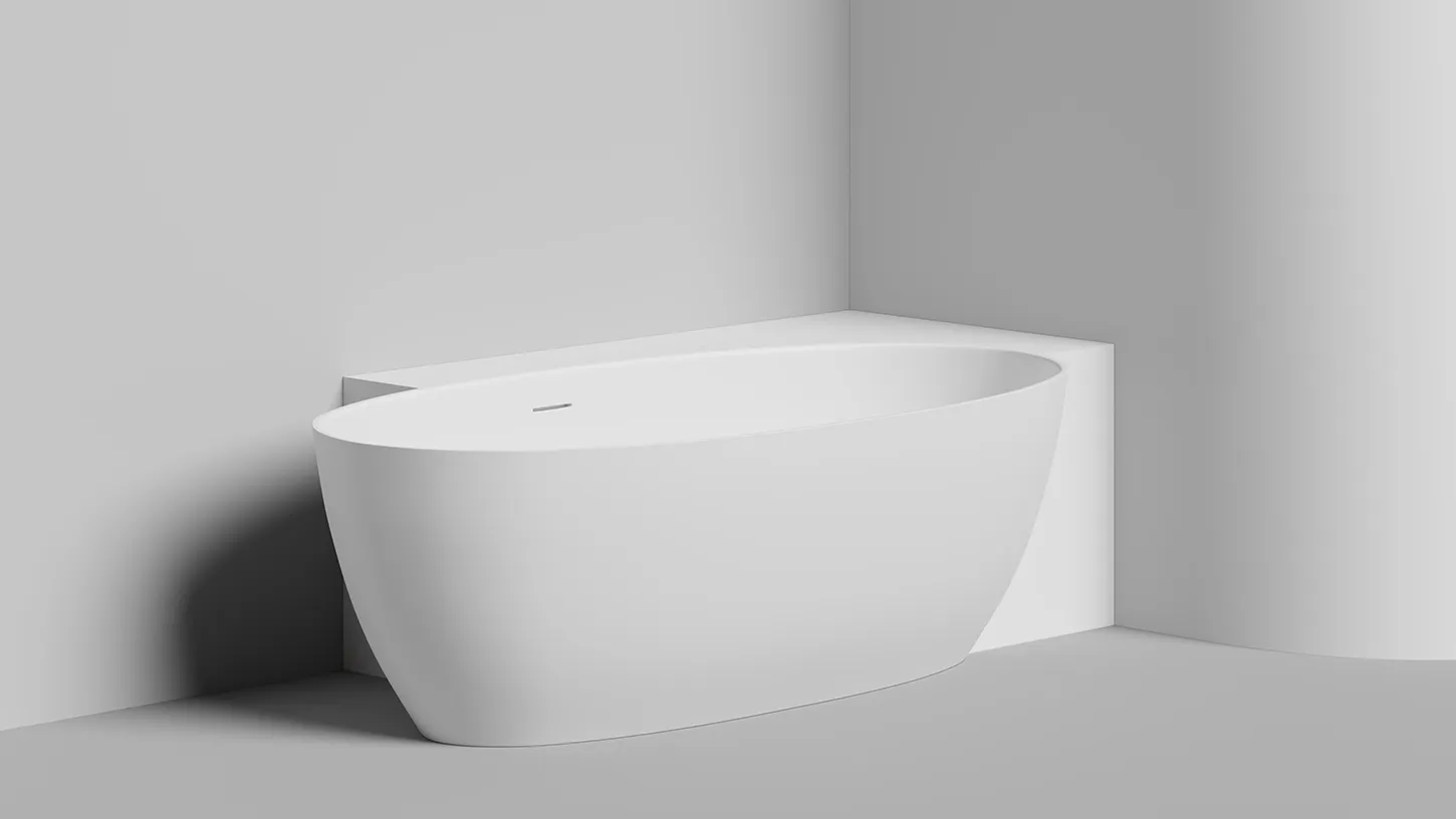 Угловая модификация для отдельностоящих ванн из материала S-Stone. Конструкция бесшовно интегрируется в изделие под прямым углом по отношению к внешним бортам ванны и создает дополнительное пространство для удобного размещения косметических принадлежностей и установки смесителя.