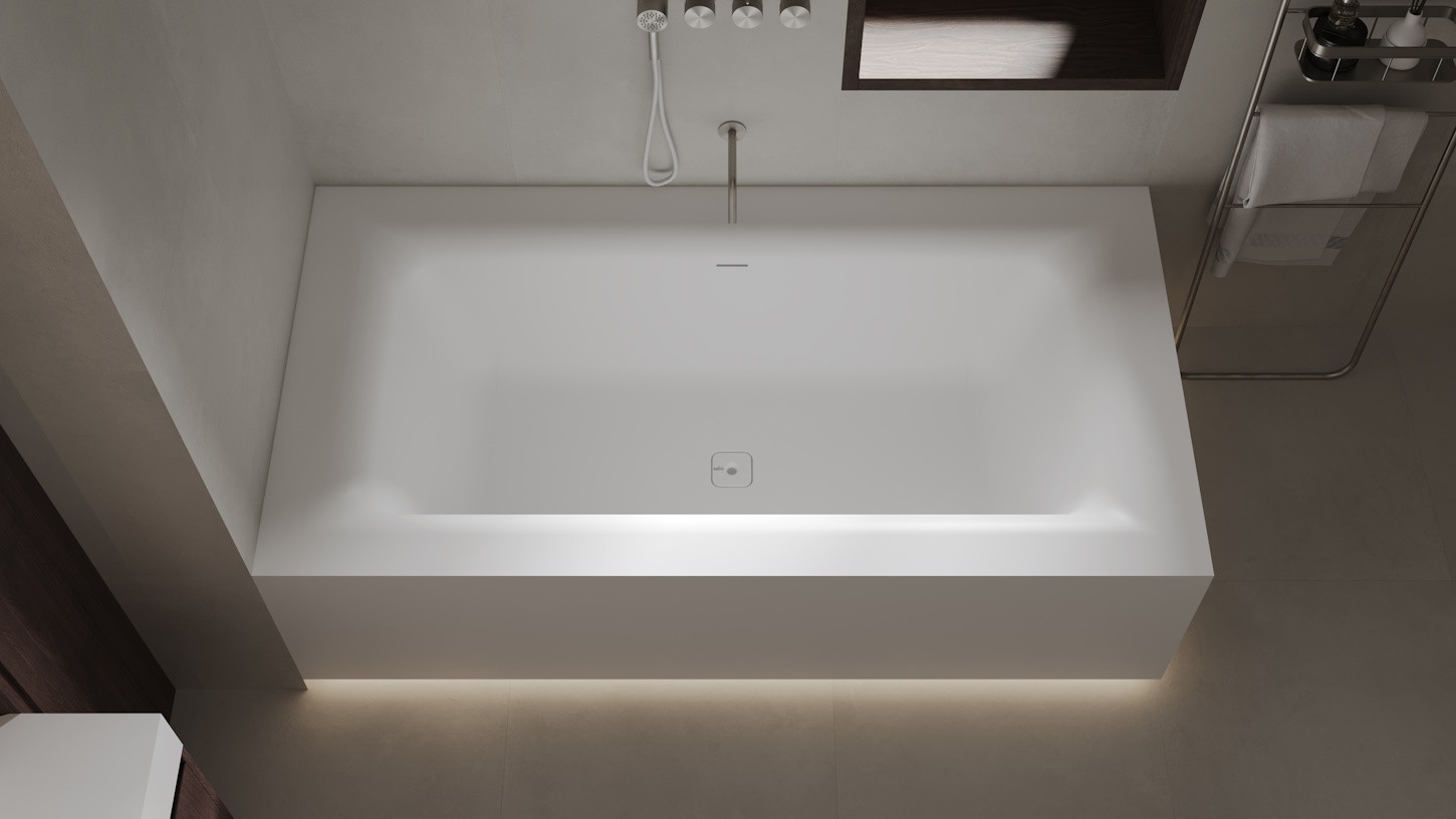 Безупречная геометрия ванны и выверенные пропорции создают образ, который существует вне времени и трендов. Строгие линии бортов контрастируют с пластичной и обволакивающей формой чаши.